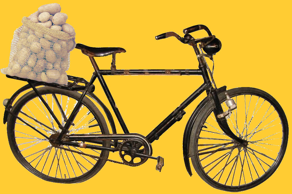 1947 ...war das Jahr, da tat sich eine Frau nicht genieren, den Opa auf der Straße so richtig zu denunzieren! Wir wissen noch heut´ nicht, was ging sie das an, was kümmert sie sich um das Heiligste von dem Mann? Was guckt sie dahin, wie´s bei ihm unten aussieht, wenn der Opa auf´m Fahrrad durch das Städtchen zieht, hinten auf dem Rad, prallvoll von Kartoffeln ein Sack, Opa muß strampeln und müht sich schön ab, durch das Schlingern des Rades kommt der Sack leicht ins Rutschen, er droht sogar gleich ganz herunter zu flutschen! Es war die Frau Brendel, die das sah und laut rief: „August, o August, Dein Sack hängt ganz schief!“ |