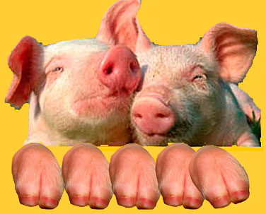 1948 ...da durfte man zum Essen mal Schlachten ein Schwein, doch das schien dem Opa für drei Kinder zu klein: so wurde ein zweites an den Ohren gezogen und um sein schweinisches Leben betrogen! Die Herma hat im Zug dann ganz laut geschnattert, da war´n ein paar Leut doch ganz schön verdattert, ganz deutlich hätt´ sie gesehen im Topf die fünf Pfoten – und soviel für ein Schwein, das sei doch verboten! |