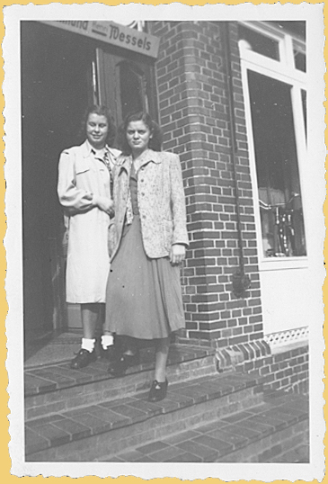 1939 ... sind, wie immer, Tant` Nelli und Oma Tüt, mit dem Rad nach Emden, natürlich in einem Stück, für die Rita gab´s ´ne Puppe, ´nen Teddy für den Dieter, weg liefen die Kinder: „Wir kommen gleich wieder!“ Doch direkt nebenan , auf dem Hindenburgplatz, da raubte ihnen ein Junge den neuen Schatz, brüllend rannten sie nach Hause, doch da gab´s dann Senge – Von wem? Wer weiß, wer war denn da so strenge? |