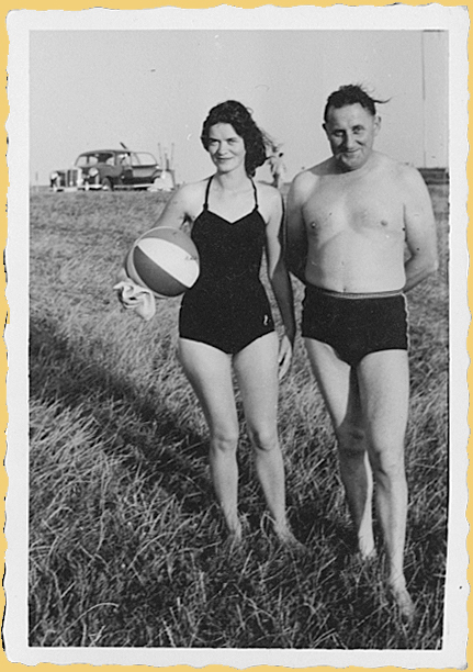 1953 ..war Hochzeit, in Müggenkrug auf dem Land, da gaben sich Heini und Elli die Hand. Auf der Dreschdiele wurde getanzt, bis spät in die Nacht, ein Kleinbus hat dann alle nach Hause gebracht. Nur Opa, der hatte leichte Probleme, den Bus sehen, das haute ihn glatt von de Beene! Flach lag er auf der Erde und fing an zu rollen – der Bus, der wird doch nicht wegfahren wollen! Und so rollte er sich die ganzen zehn Meter weit – stand wieder auf und stieg einfach ein! |