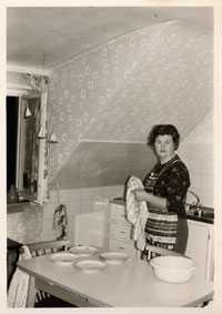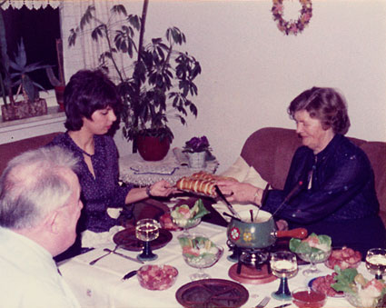 1976 ...begann nach der langen Molkereiarbeitszeit, mit dem Rentnerleben die allergrößte Freud, nämlich seit diesem Tag, seit 18 Jahren und einigen Wochen, lässt Oma sich jetzt schon von Opa bekochen! Das hat Oma jetzt völlig verlernt, aber Opa hat ja Zeit – Und Oma kocht ihr Motto: jung gefreit und nie bereut! |