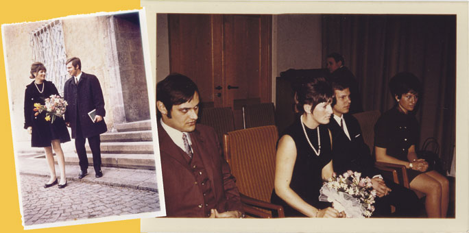1983 ...wurd´s bei Biggi und Ralfi endlich wahr, geplant war´s ja auch schon länger als ein Jahr, als Termin, sie dachten sich ar nichts dabei, da nahmen sie ganz frech Freitag, den 13. Mai, sie dachten, das Datum kann einfach nicht schaden, wir kennen uns ja schon seit so vielen Jahren, an dem Tag ließen sie sich standesamtlich trauen, mit Oma und Opa, acht Männern, acht Frauen – so voll ist´s sonst nie auf dem Standesamt, das hat die Beamtin so gar nicht gekannt! Aber Oma gefiel´s, Opa sagte, das mocht´er, denn jetzt hatten sie endlich ihre Schwiegerenkeltochter. |