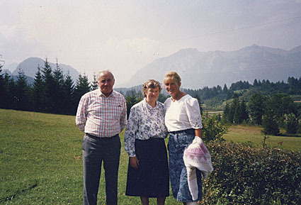 1979 ...kam mal wieder aus München Besuch, der Markus war´s, derkleine große Bub, die Oma Franzi hatte er mitgebracht, die hat immer so gerne so bayerisch gelacht, an einem Sonntagmorgen – es war eine Lungenembolie, oben im Bett, ganz friedlich ein schlief sie. Ich kann Euch sagen, das war ein Schreck, der Markus allein, die Omi für immer weg! Aber irgendwie geht das Leben immer weiter, im Nachhinein betrachtet, auch an diesem Tag heiter: denn im Totenzimmer oben lag `ne Leiche im Haus, und Oma und Opa sitzen unten beim Taubenschmaus! |