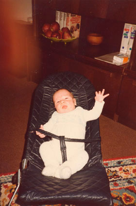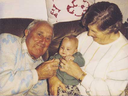 1987 ...es begann gleich im Januar heiter, da ging es schon mit den Nachkommen weiter, denn am 18. kam der Patrick auf die Welt, und da wurden der Urenkel schon zweie gezählt. Mann, war das Baby erst ein lieber Bub`, wenn die Oma ihn auf den Armen trug! Aber später hat´s Oma und Opa doch manchmal verdrossen, besonders, wenn er bei ihnen durch´s Gemüse geschossen! |
