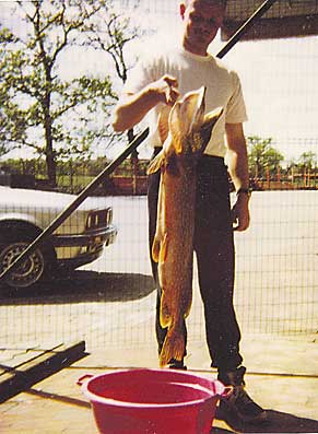 1988 ...war der Marc wieder mal da zu Besuch, brachte ins Haus immer so´n fremden Geruch, den brachte er vom Updorfer Tief immer her, es roch dann nach Fisch und noch viel mehr, dieAale konnte Opa nämlich vorzüglich räuchern, bloß Oma, die tat dann immer nur keuchern! Einmal fing der Marc ´ne Sechspfund-R iesenschleie, in der Küche war dann der Opa an der Reihe, doch als nun das köstliche Mahl sollte auf den Tisch – zerräuchert und zerfallen war er – der riesige Fisch! |